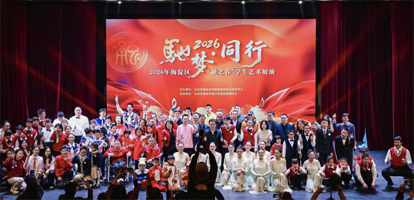本刊讯:1月18日,由北京市海淀区特殊教育研究与指导中心主办的2026 年“融之春”学生艺术展演活动圆满举行。来自中国教育科学研究院、北京市残疾人联合会、海淀区总工会、海淀区红十字会、海淀区教委等相关部门领导、专家与会,同来自各个学校的师生及家长,共同见证特需学生与普通学生以艺为桥、携手绽放的动人时刻。